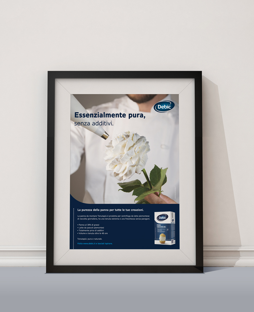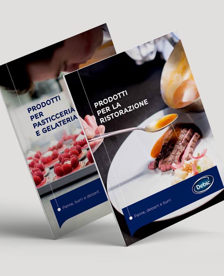 Un'attività composita e sinergica nelle sue declinazioni, la nostra per Debic Italia: campagna stampa ADV per promozione focalizzata sul mercato italiano, con contenuti adattati da quello estero ma anche con creatività ad hoc differenziata per target Bakery ed Horeca; attività di PR e ufficio stampa, in coordinamento con i brand ambassador Leonardo di Carlo e Luca Montersino. Come per le attività ADV, studio e realizzazione dei cataloghi prodotti per i canali professional Bakery e Horeca, e dei leaflet per la rete vendita, hanno seguito i princìpi di creatività, originalità e sintesi.